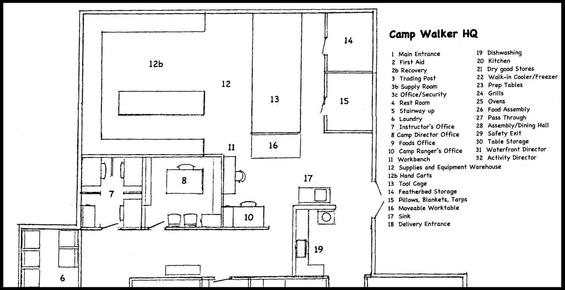 enlarged section of the HQ Floor plan highlights the warehouse and workshop end of the building. Both are provided to better illustrate the locations of two very intimate scenes.